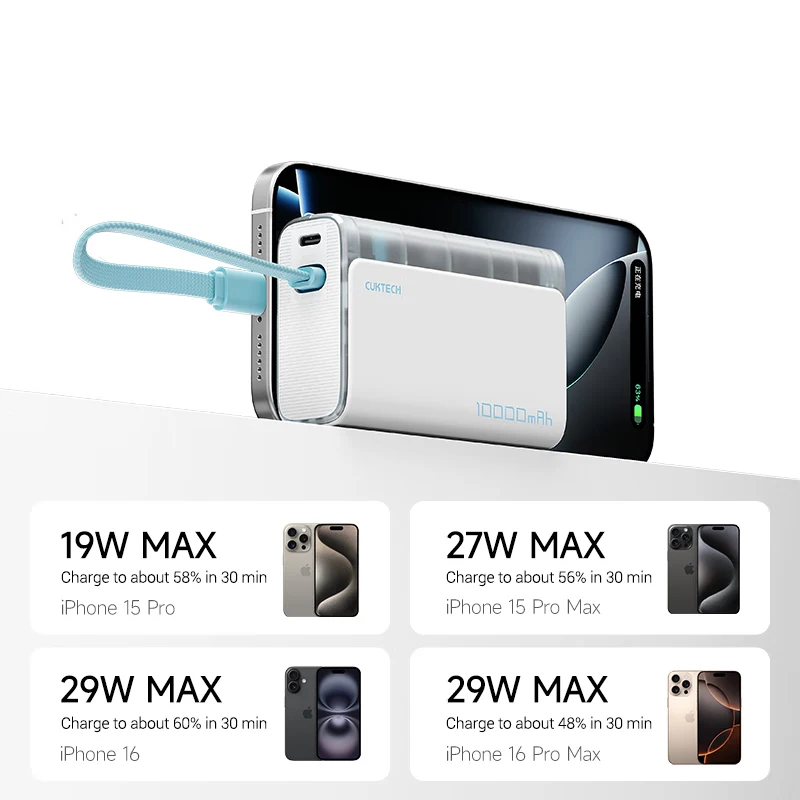 CUKTECH Power Bank 10000 33W MAX Output Built-in Cable PD PPS UFCS Fast Charging For iPhone 16 Xiaomi 15 Samsung