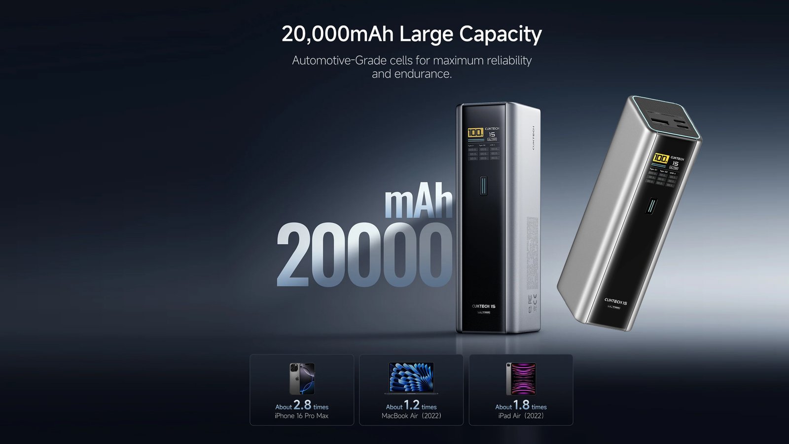 CUKTECH PB200 No.15 SE Power Bank 20000mAh 100W 2-Port Output Portable Screen Display Power Bank For Macbook iPhone 14 Xiaomi 14