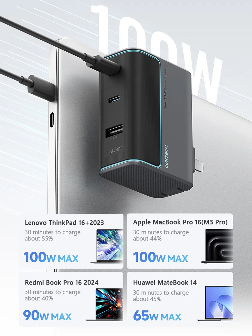 Tính năng Củ Sạc Nhanh CUKTECH AD1003 120W (2*Type-C + 1*USB-A port, Support Mi Turbo 120W)
