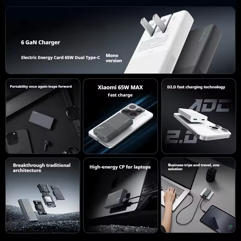 Hình Ảnh Củ Sạc Nhanh CUKTECH Ultra-thin AD65 65W (2*Type-C port, PD3.0/PPS2.0/QC4.0, with 1.5m 6A C to C cable)