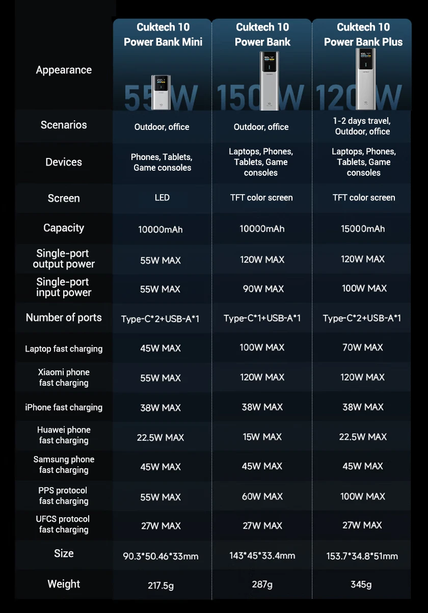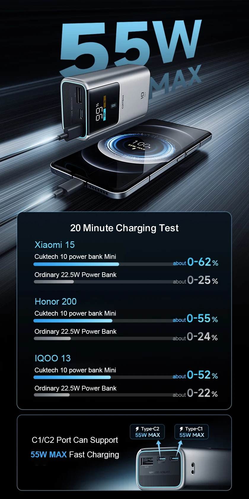 CUKTECH 10 Power Bank Mini 10000mAh PB1055 55W MAX 2-Port Output Portable Charger For iPhone 16 Xiaomi 15 Huawei