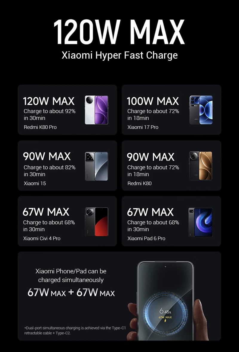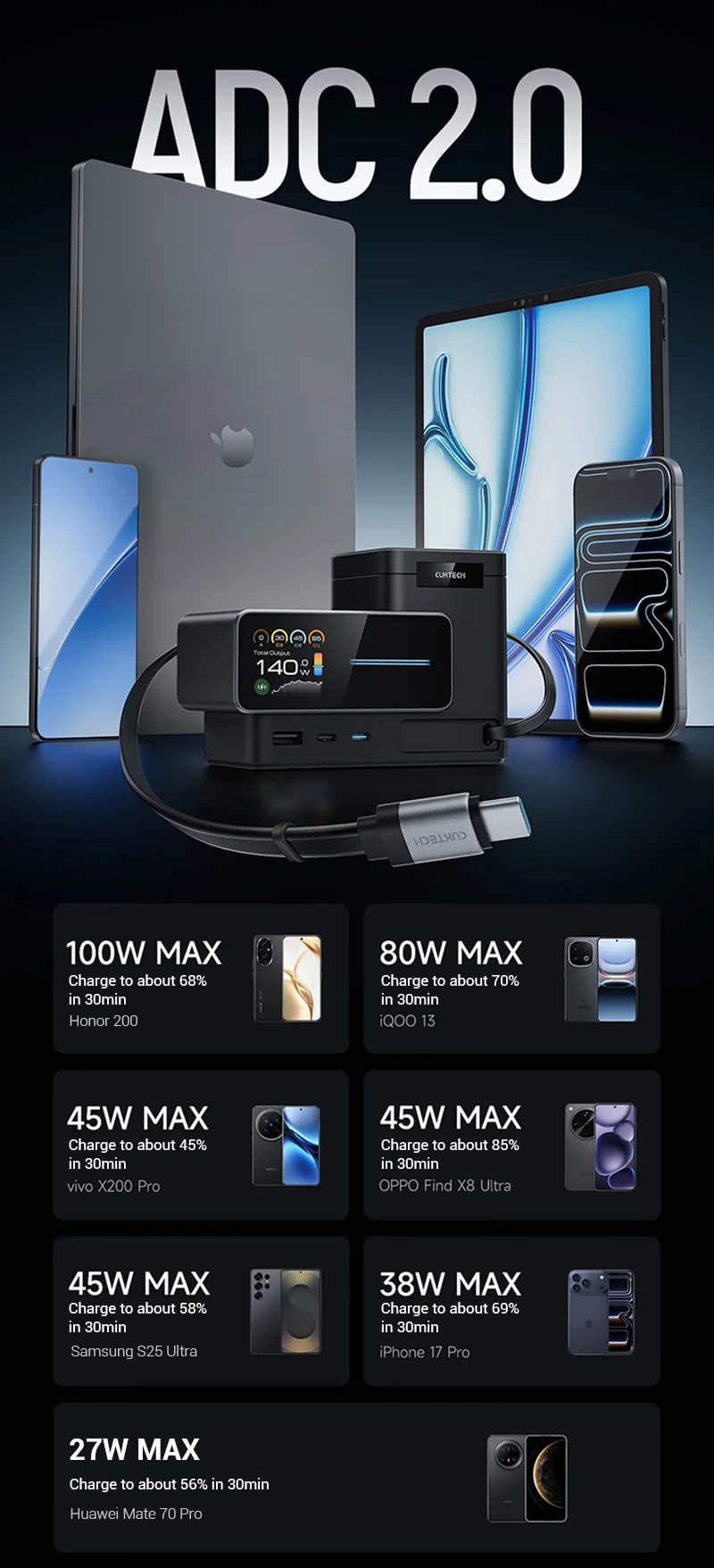 Compatible with PD 3.1 140W, PPS 100W, Xiaomi 120W, PPS 100W, UFCS Fusion Fast Charging 33W, Huawei SCP 22.5W, QC, AFC, and multiple fast charging protocols