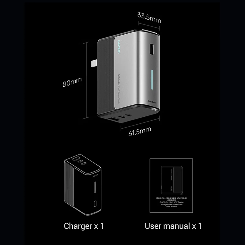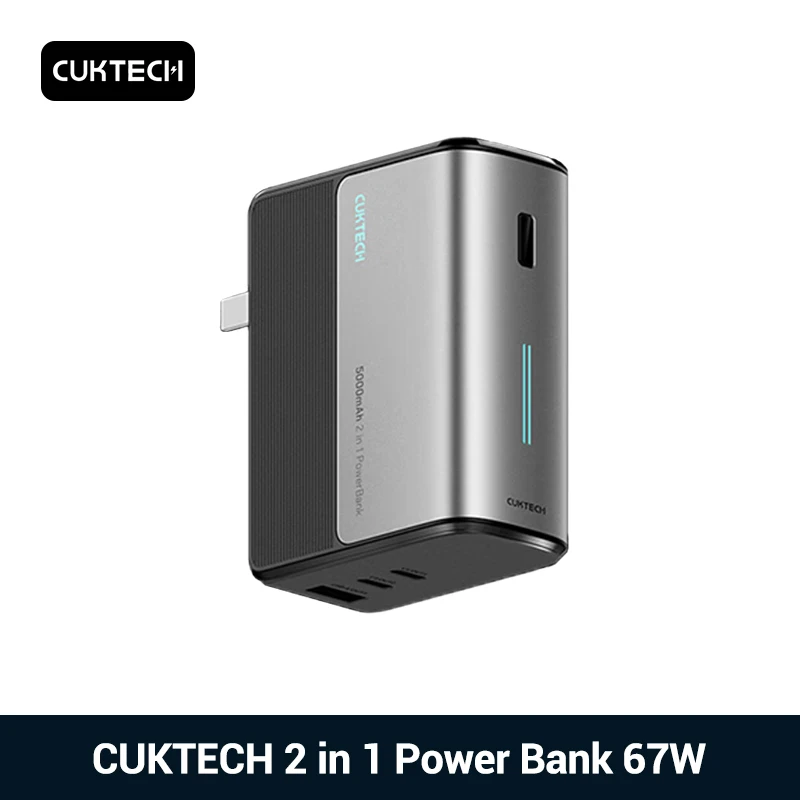 CUKTECH 2 in 1 Power Bank 5000 67W Portable Charger Foldable AC Plug 22W Max Battery Output For Laptop iPhone 16 Xiaomi Huawei