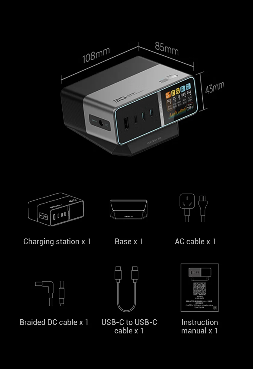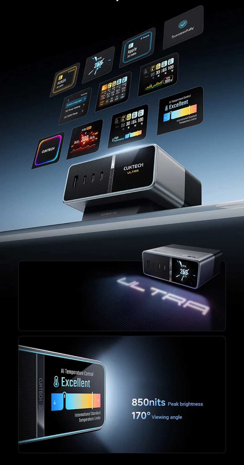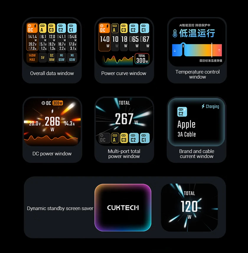 CUKTECH 30 Charging Station Ultra 300W GaN USB-C DC Charger 1.83″ IPS Display For Xiaomi iPhone DIJ Laptop Camera