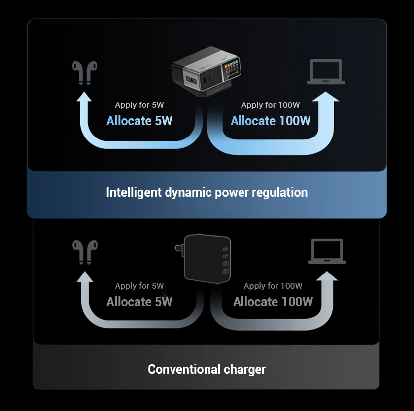 Intelligently matches the power demand of the device being charged with the remaining power of the product, maximizing the charging needs of the device.