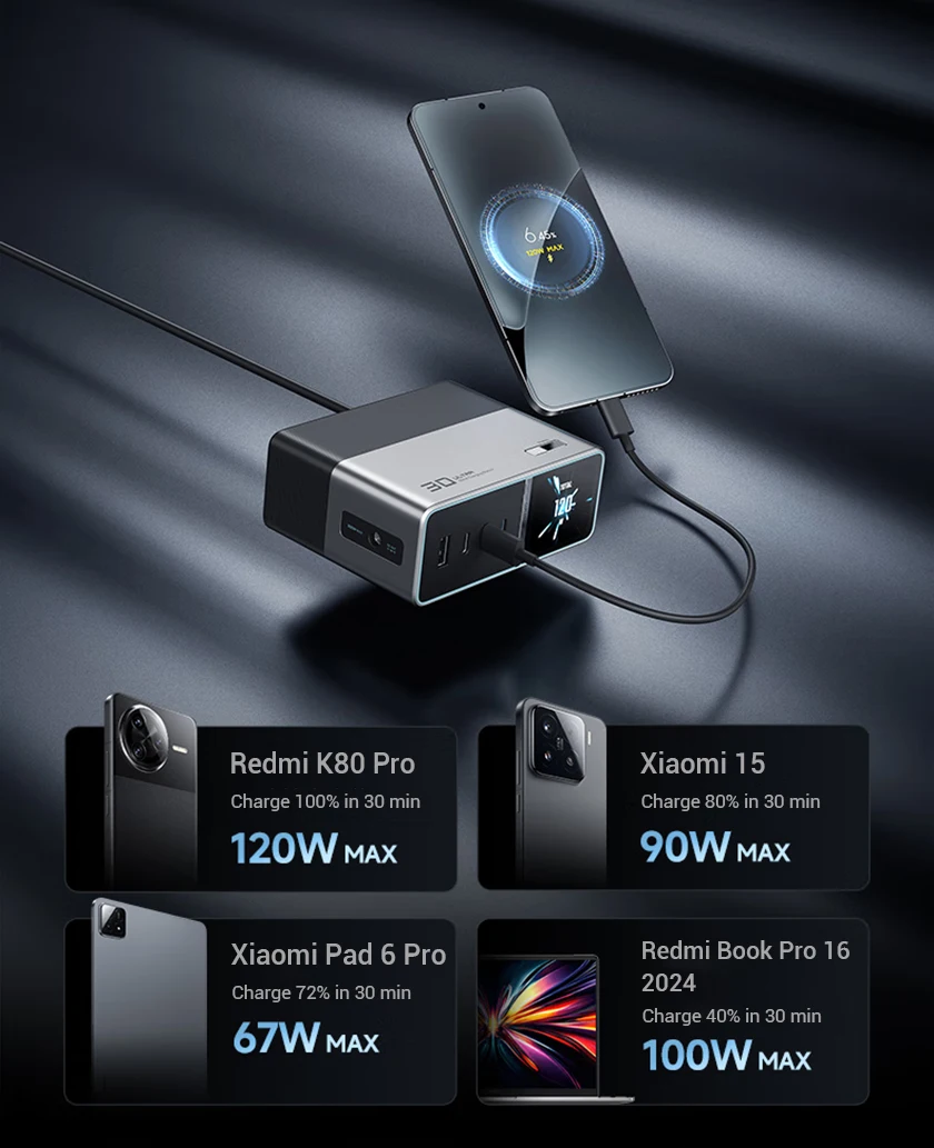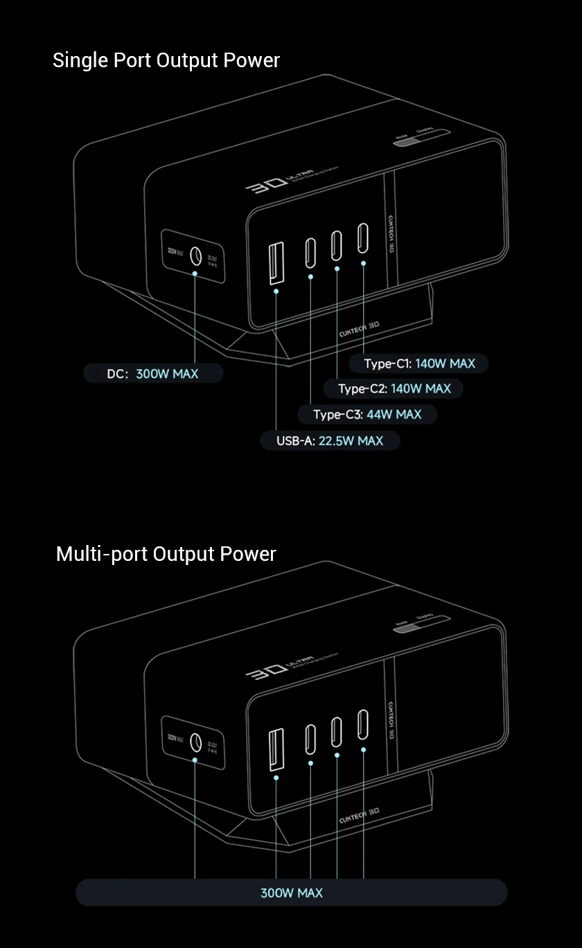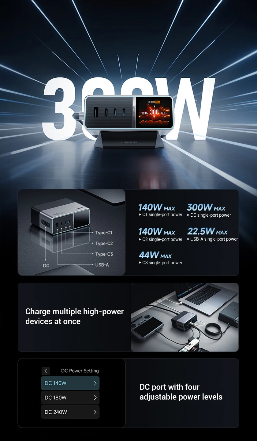 Supports up to 5 devices with a maximum total charging power of 300W MAX