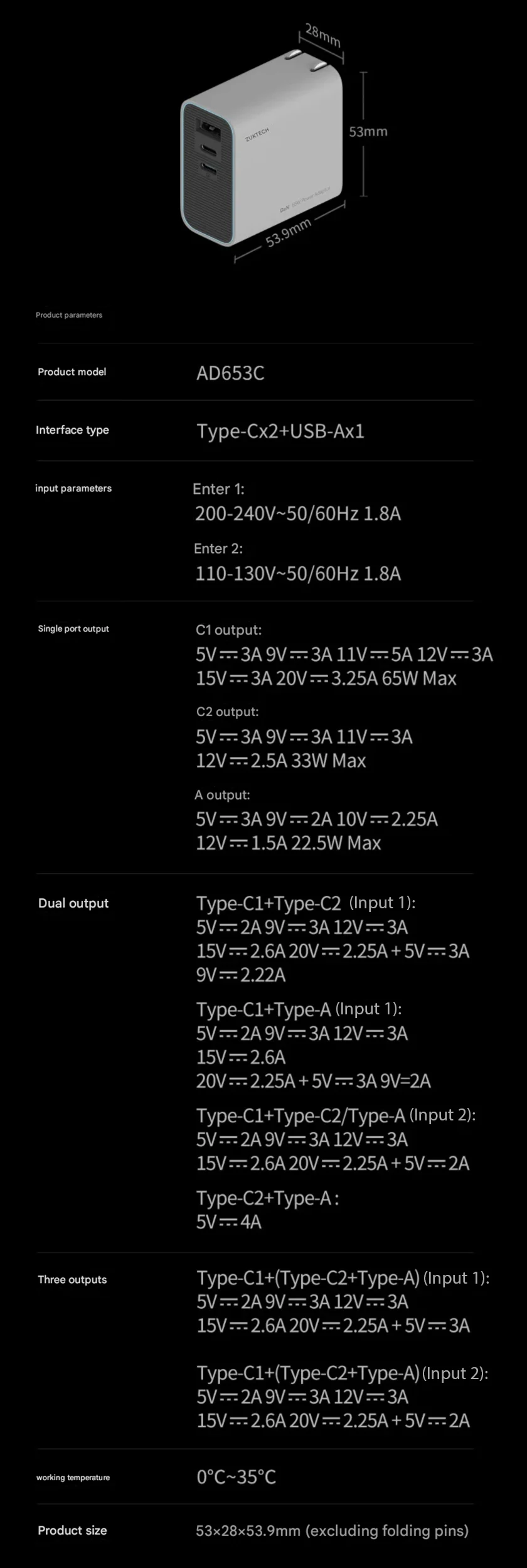 Port: USB-C×2 + USB-A×1