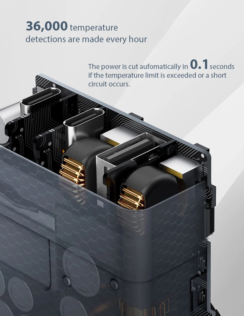 The power is cut automatically in 0.1 seconds if the temperature limit is exceeded or a short circuit occurs.