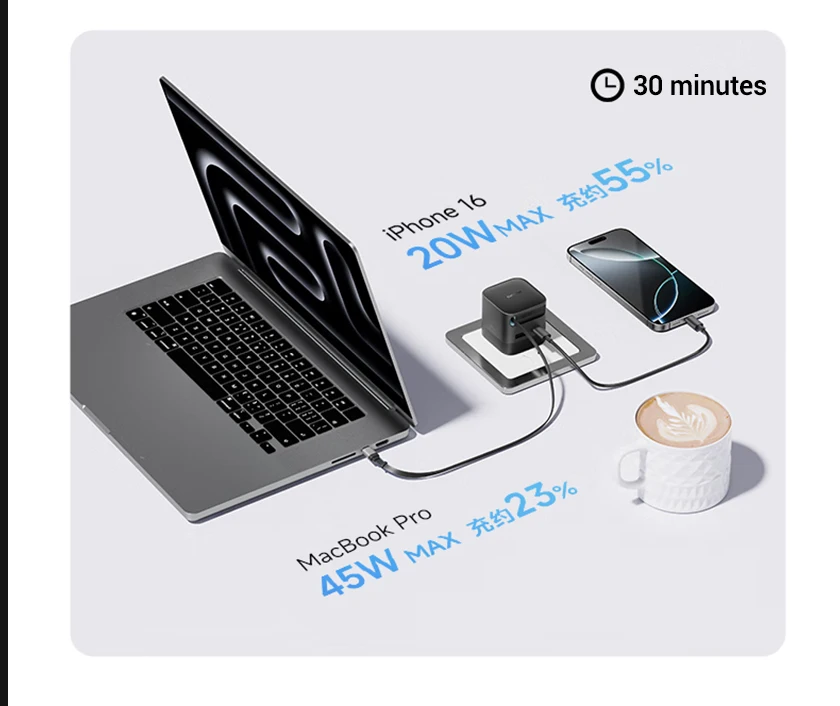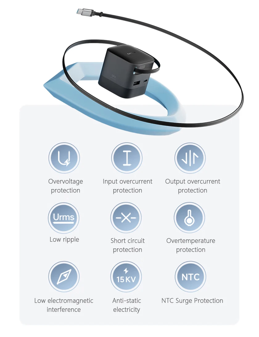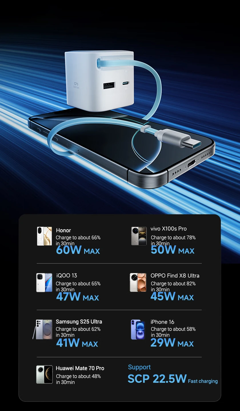 It is compatible with fast charging protocols such as PPS, QC, PD, FCP and SCP.