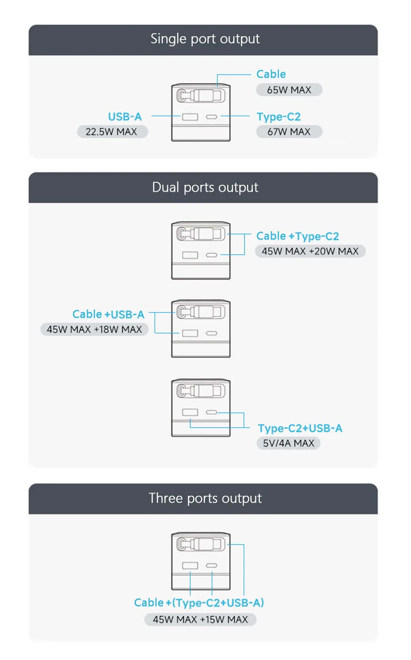 Port: Type-C x 1 + Type-A x 1 + Integrated cable x 1