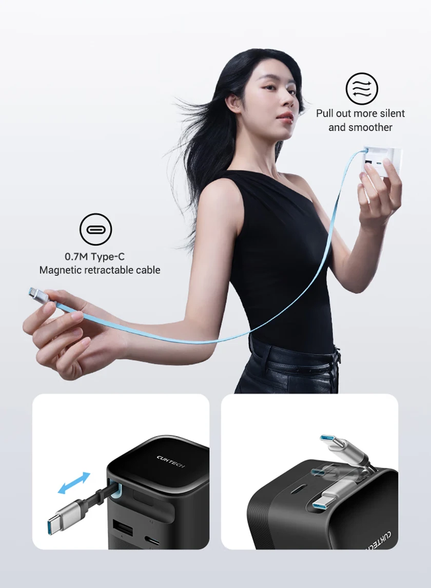 CUKTECH GaN Charger 67W Integrated Cable USB-C Fast Charger For Xiaomi 15 iPhone 15 16 MacBook Laptop