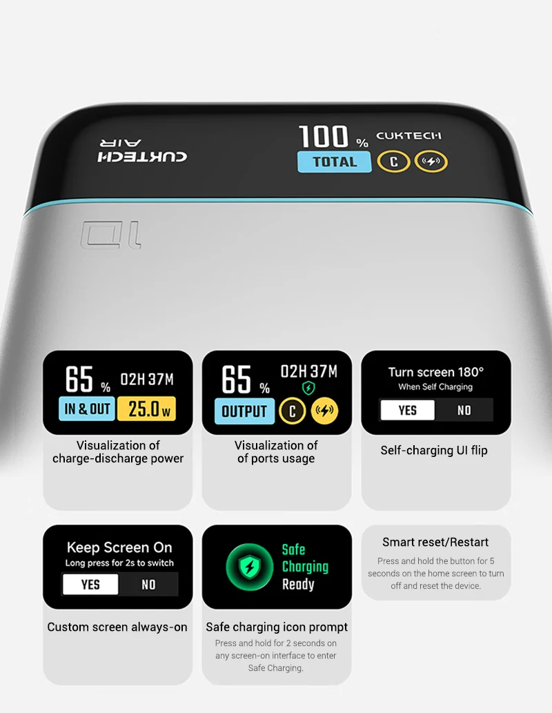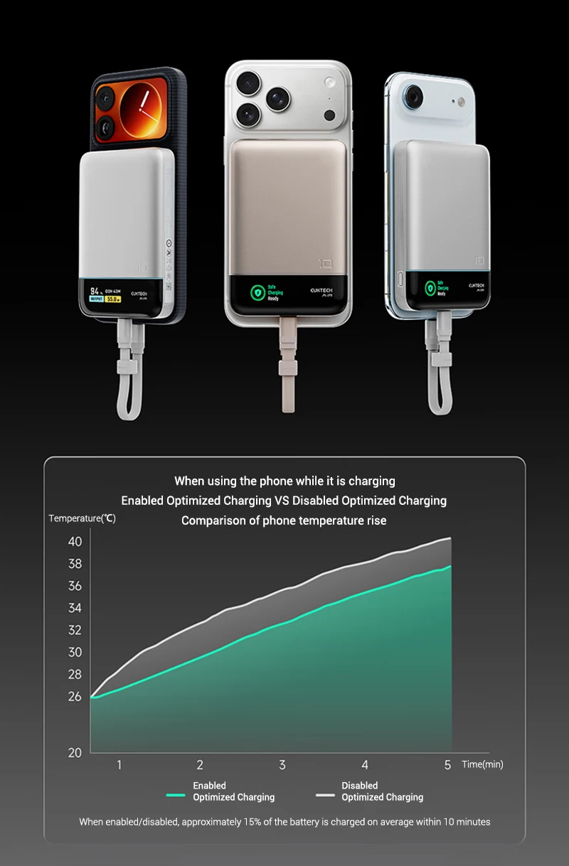 Equipped with CUKTECH’s self-developed Adapt Charging and Optimized Charging technologies.