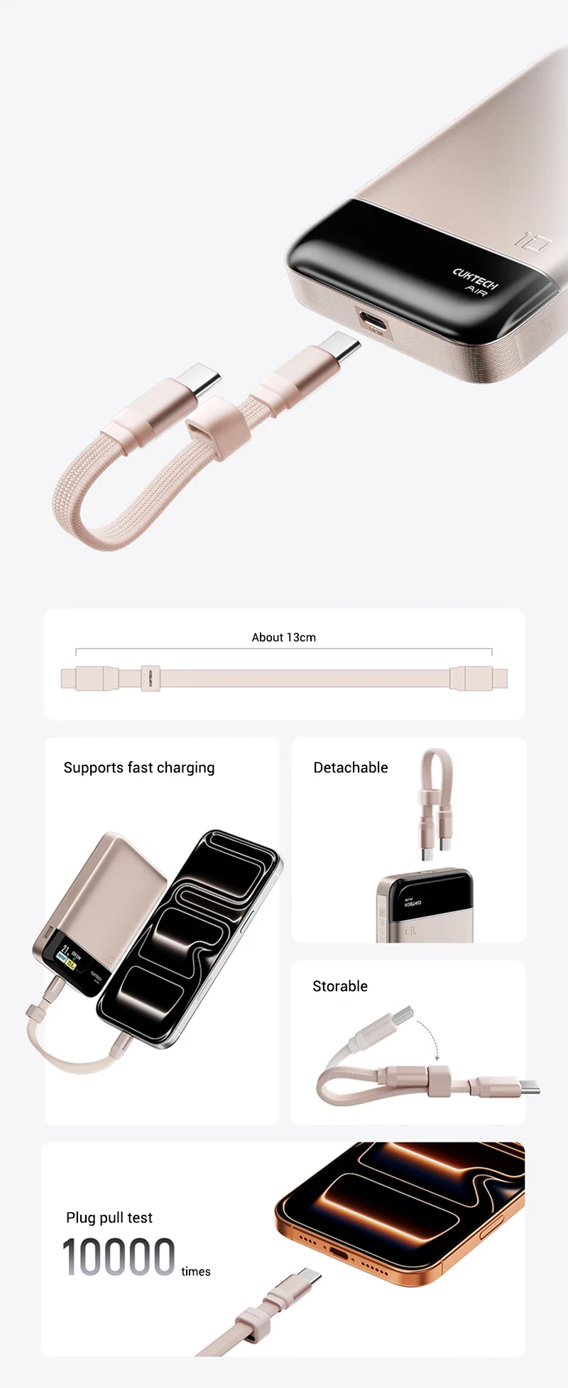 CUKTECH Power Bank 10000 33W MAX Output Built-in Cable PD PPS UFCS Fast Charging For iPhone 16 Xiaomi 15 Samsung