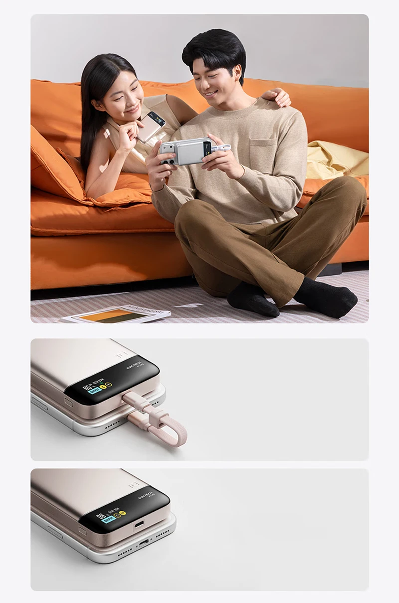 CUKTECH Built In Cable Power Bank 20000mAh 55W Max USB C 2-Way Fast Charging For Macbook Pro iPhone 15 Xiaomi