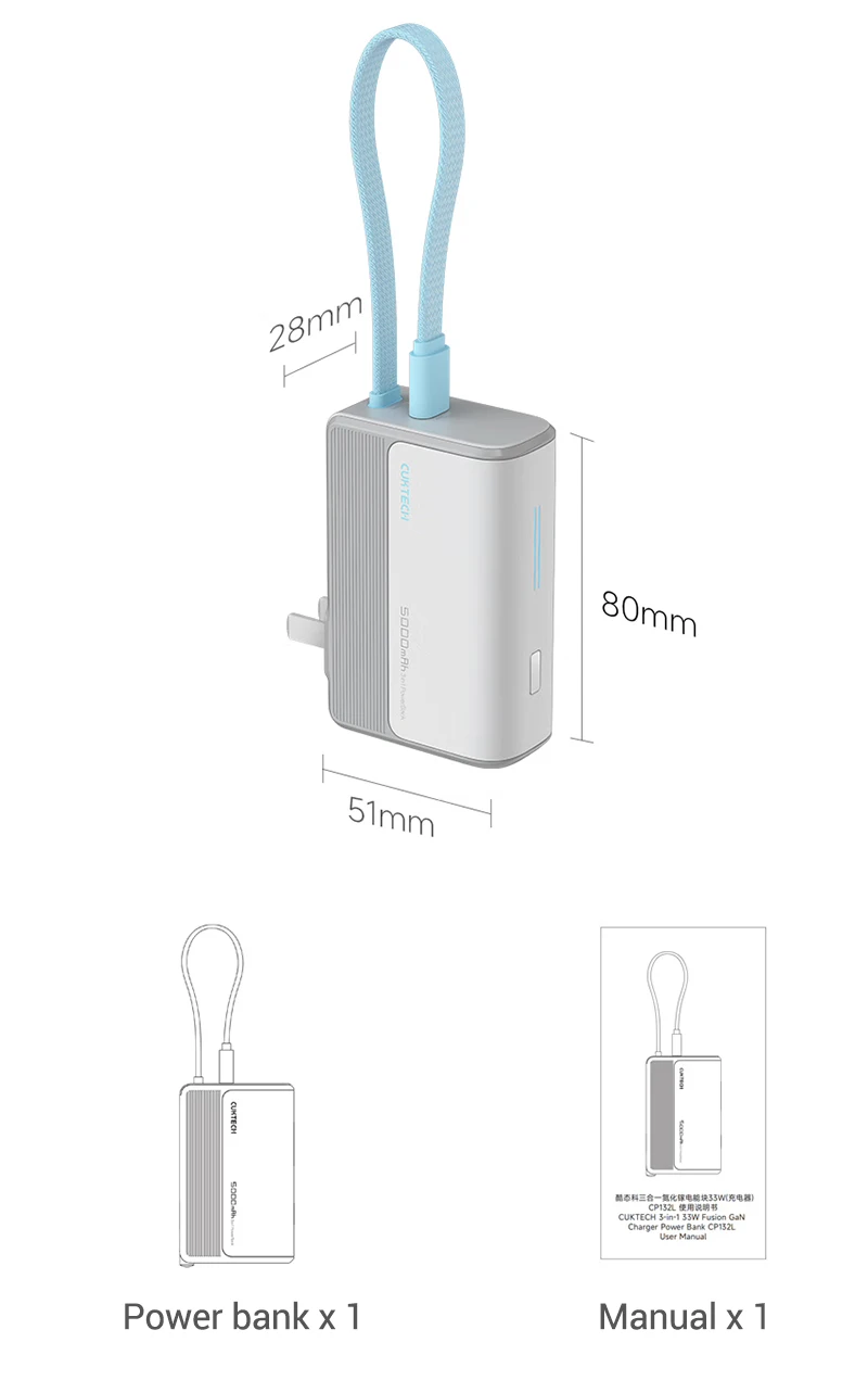 Hãy tưởng tượng bạn có thể thay thế cả củ sạc và pin dự phòng cồng kềnh chỉ bằng một thiết bị duy nhất, nhỏ gọn trong lòng bàn tay. Cuktech CP13 chính là câu trả lời. Đây là sản phẩm “2 trong 1” đột phá, kết hợp sức mạnh của củ sạc nhanh GaN 33W và sự tiện lợi của pin dự phòng 5000mAh, mang đến giải pháp năng lượng tối ưu cho người dùng yêu thích sự tối giản và thường xuyên di chuyển.