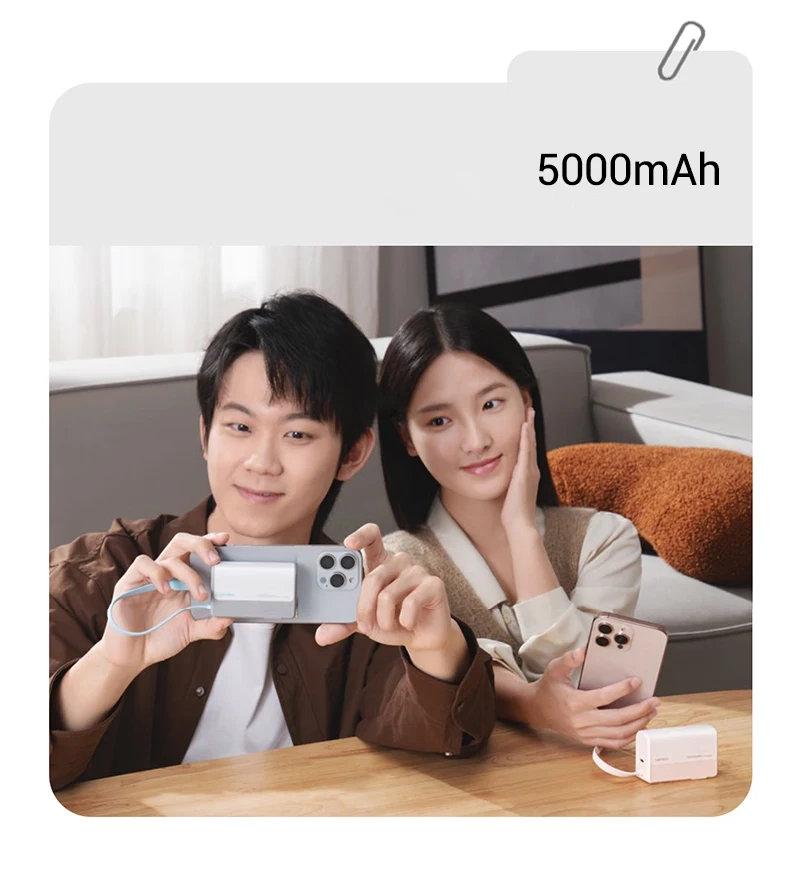 Với dung lượng 5000mAh, viên pin này là cứu cánh hoàn hảo cho những lúc bạn cần nạp lại năng lượng khẩn cấp, đủ để sạc gần đầy cho một chiếc iPhone 15.