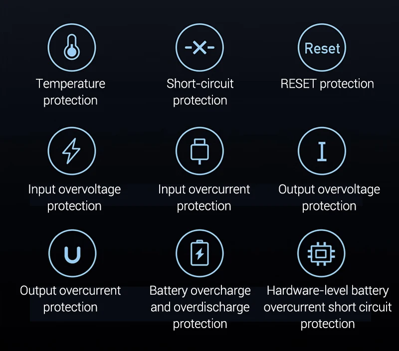 Power bank input (IN1/IN2): 5V/3A, 9V/2A 18W Max
