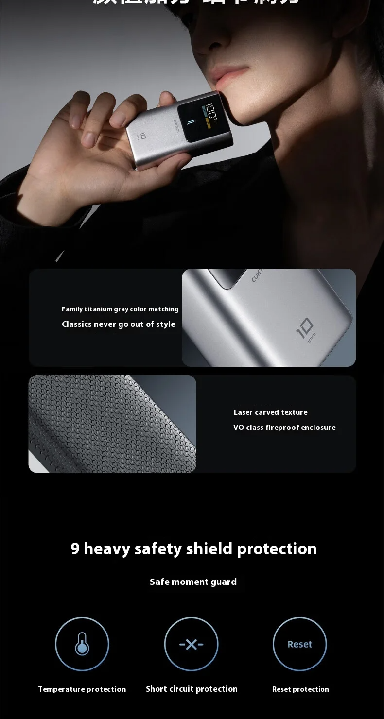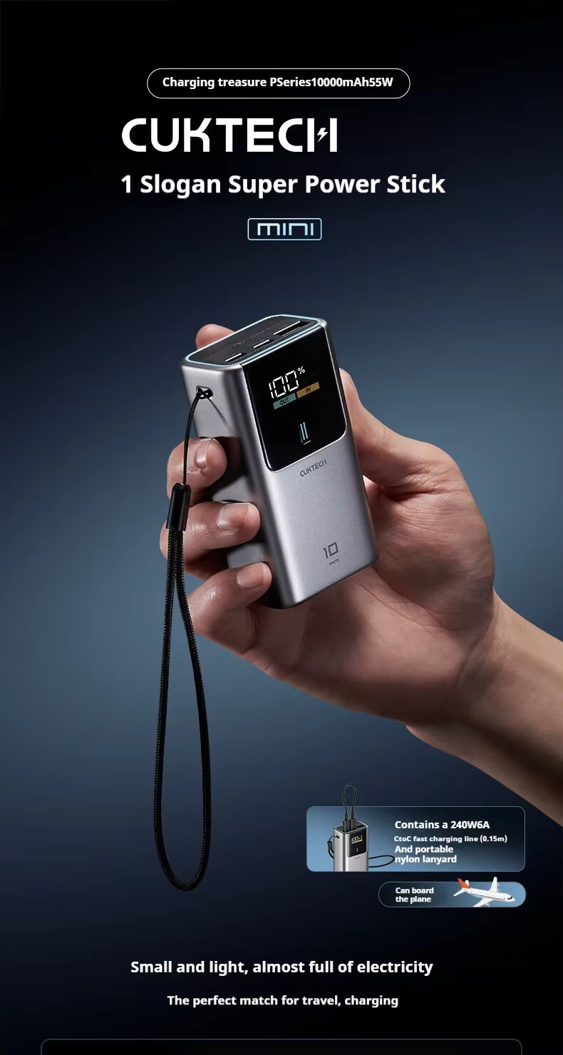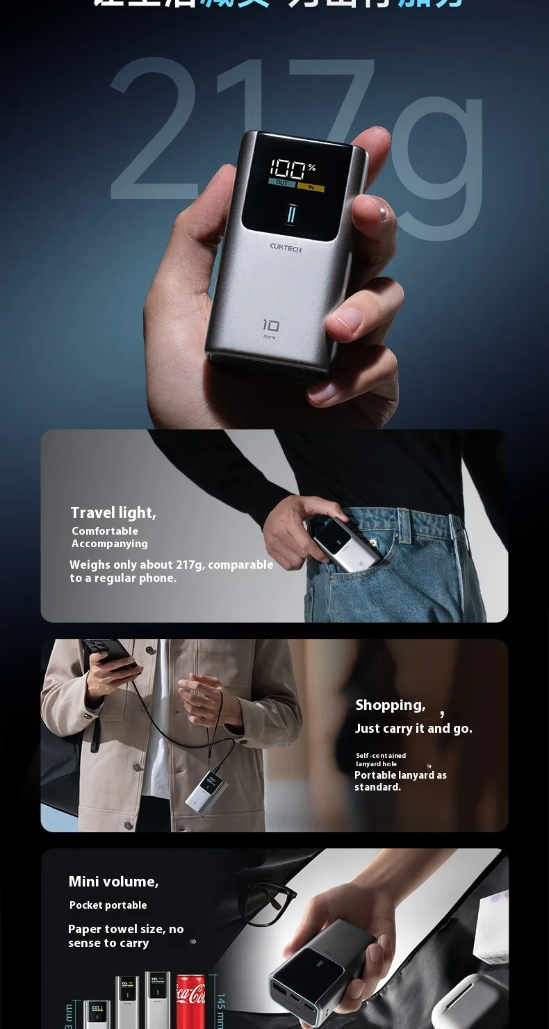 Hình Ảnh Pin Dự Phòng CUKTECH 10 Mini 10000mAh 55W (2*Type-C + 1*USB-A, LED Digital Display, Flight-approved)
