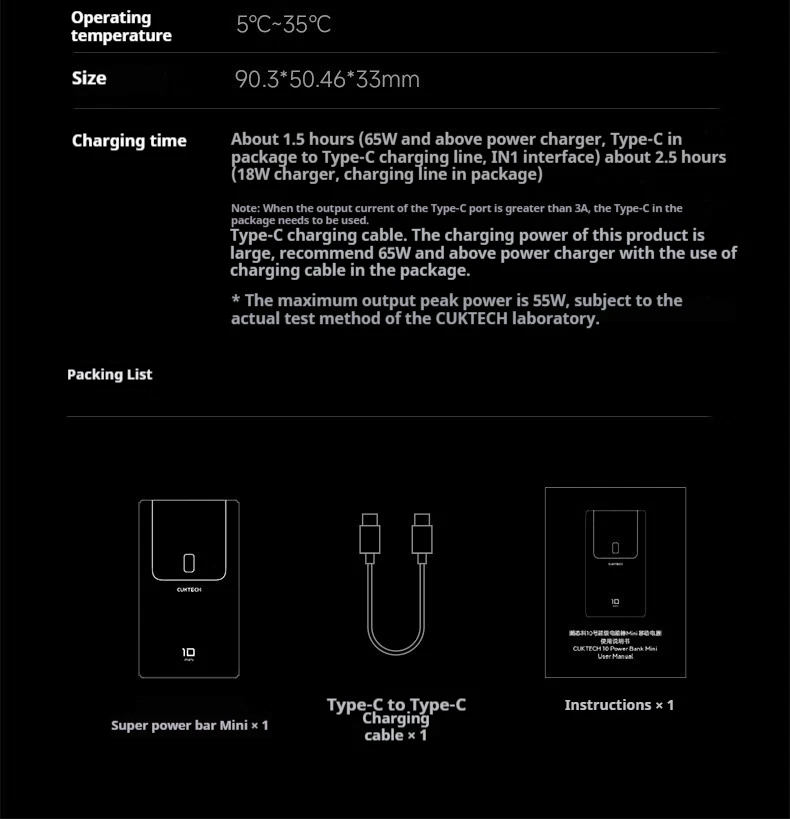Tính năng Pin Dự Phòng CUKTECH 10 Mini 10000mAh 55W (2*Type-C + 1*USB-A, LED Digital Display, Flight-approved)