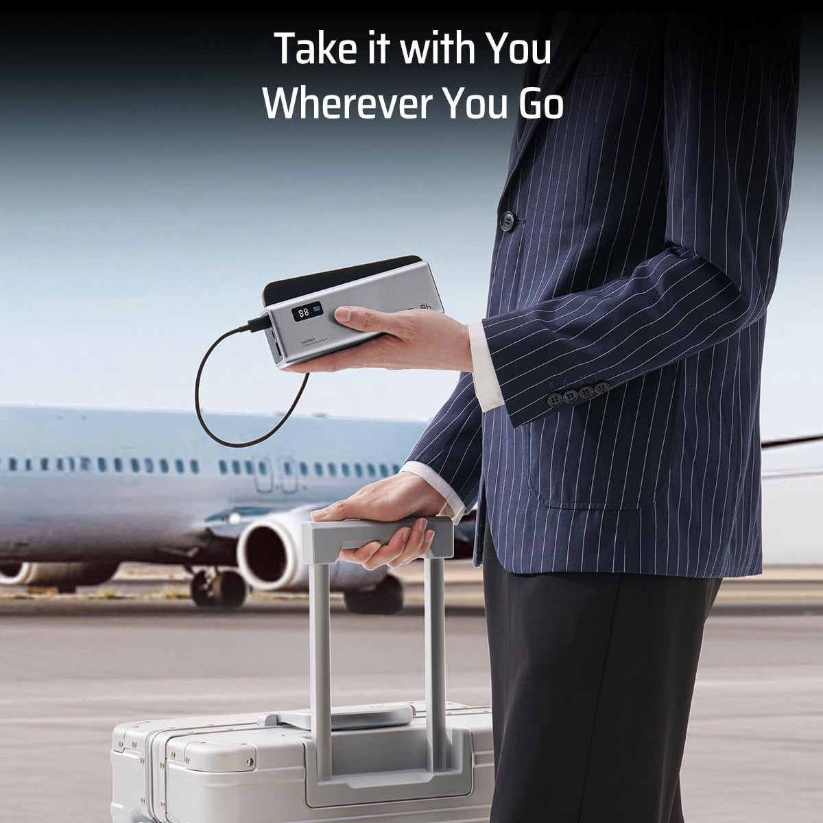Phụ Kiện Đi Kèm: Gói sản phẩm bao gồm power bank CUKTECH 15, một cáp dữ liệu sạc nhanh 3,3ft 240W, 6A (tương thích với giao thức PD3.1) và một hướng dẫn sử dụng toàn diện. Power bank CUKTECH 15 phù hợp để mang theo trong hành lý khi đi du lịch bằng máy bay.