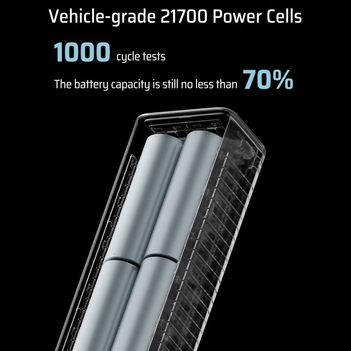 Độ Bền & Thiết Kế: Sử dụng cell nguồn 21700 cấp tự động và có một tấm nhiệt kim loại cỡ lớn, power bank đảm bảo hiệu quả phân tán nhiệt. Được trang bị bốn cảm biến nhiệt độ tích hợp, nó theo dõi biến đổi nhiệt độ theo thời gian thực, tăng cường độ bền. Khả năng sạc và phát điện công suất cao của nó góp phần vào thời gian sạc nhanh hơn và thời gian sử dụng kéo dài.