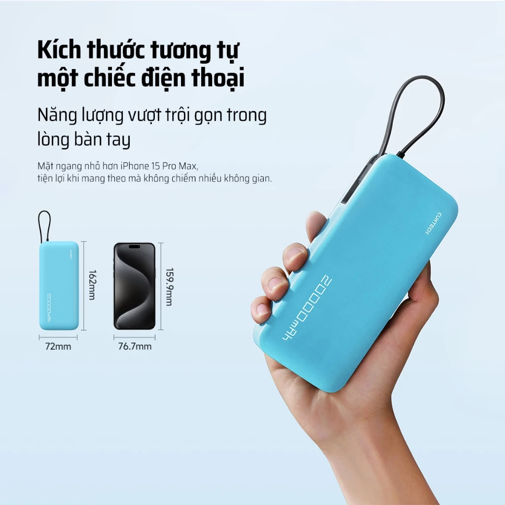 • 20.000mAh – Sạc iPhone 14/15 khoảng 4-5 lần , Samsung 4 lần
