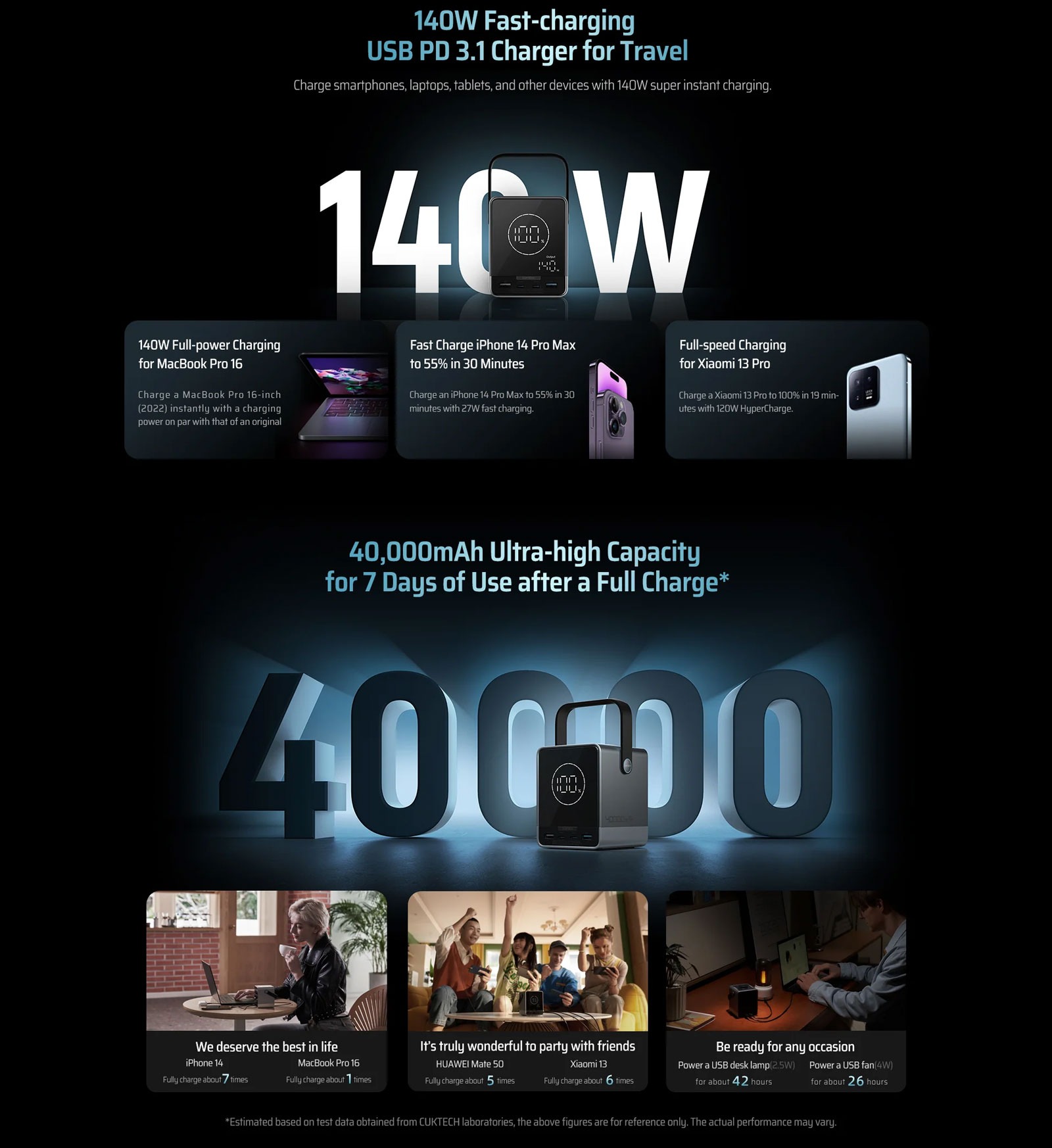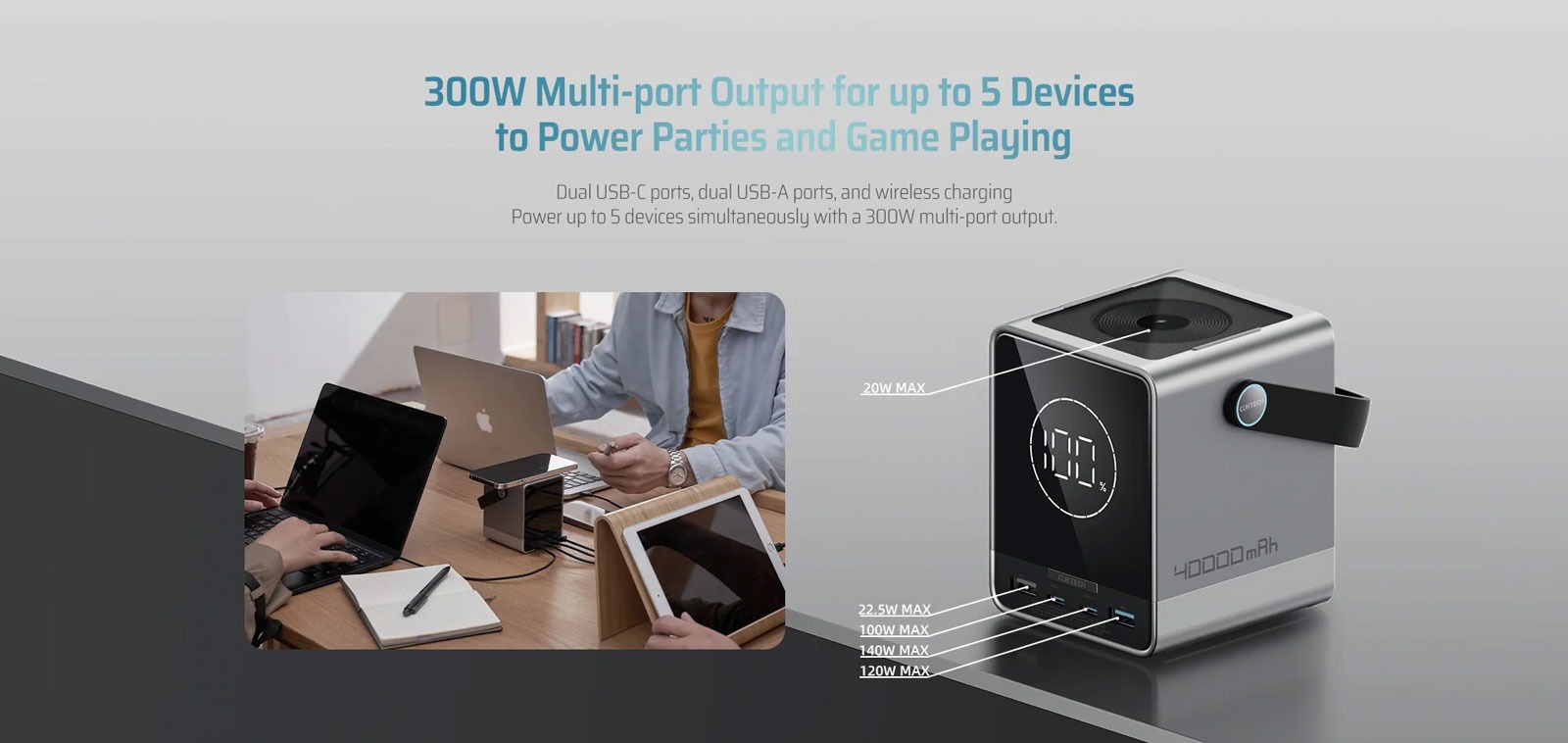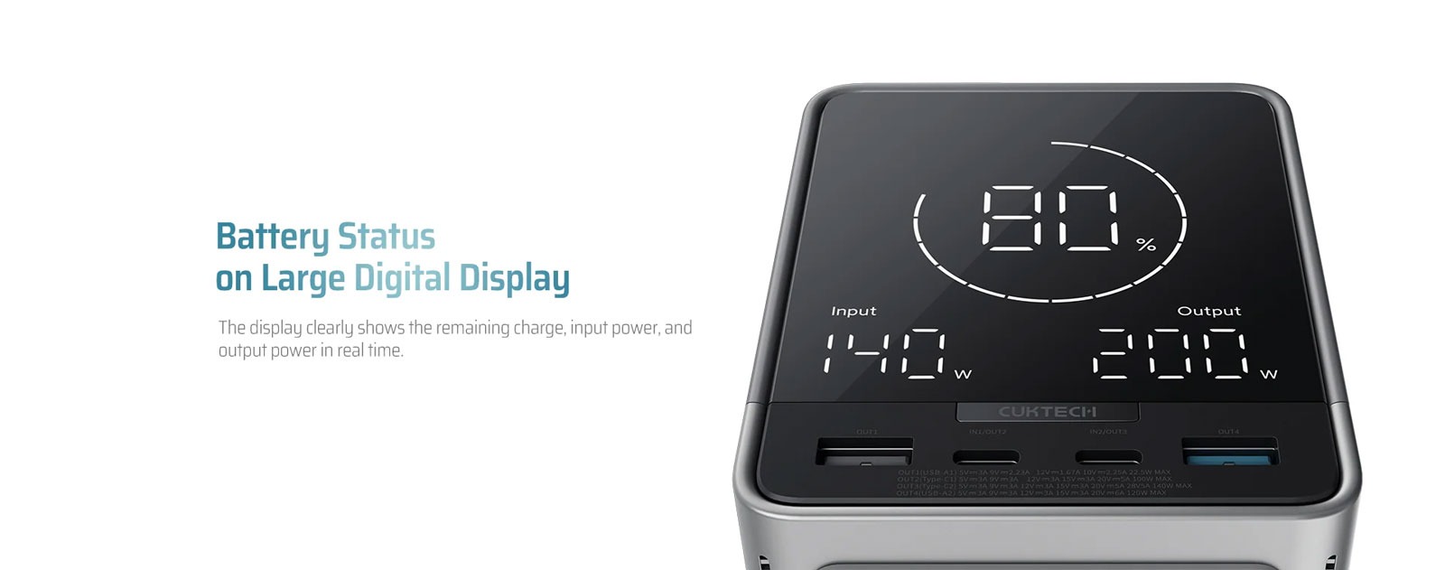 Hình Ảnh Pin Dự Phòng CUKTECH 30 40000mAh 300W (2*Type-C + 2*USB*A Port, Sạc Không Dây 20W, Digital LED Display)