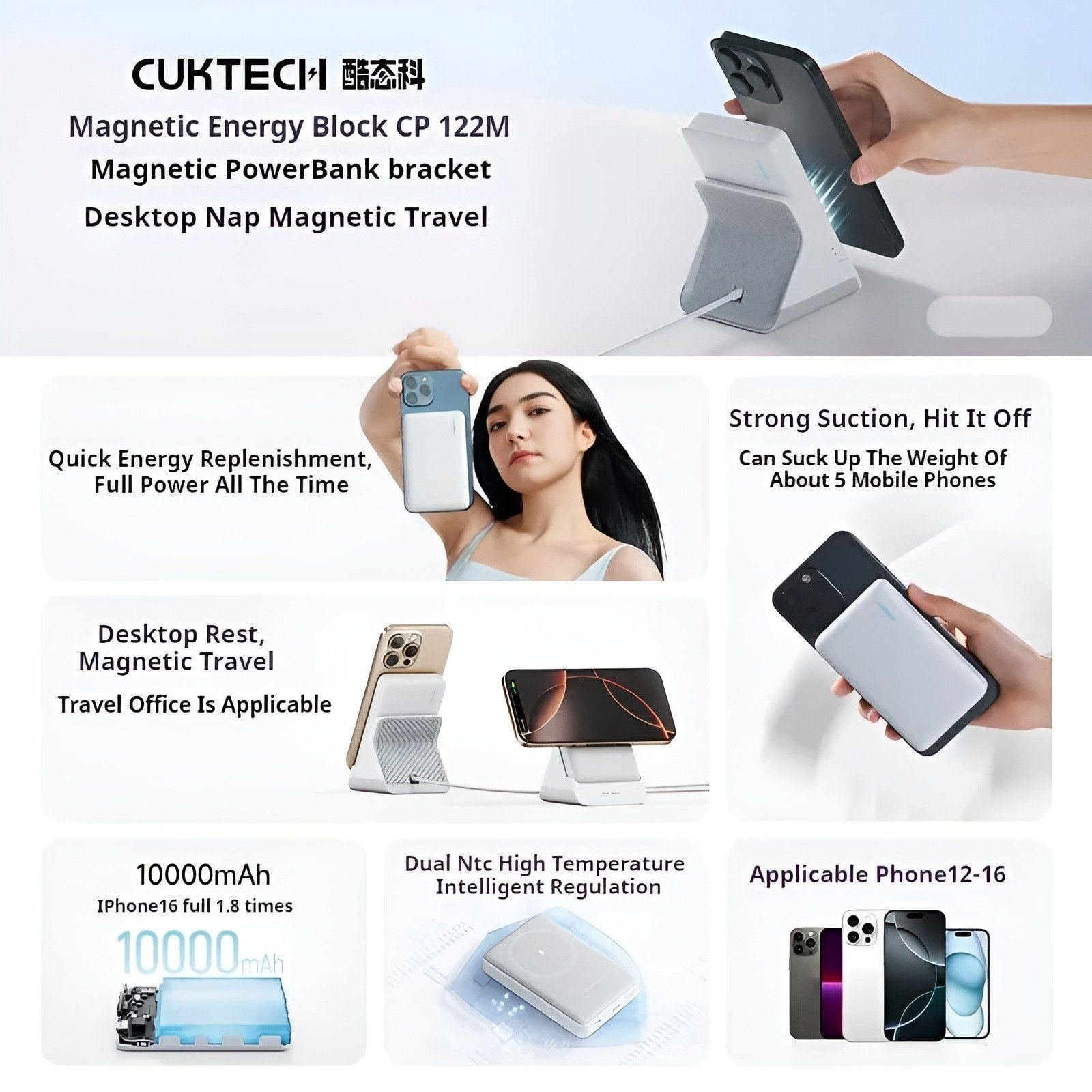 The Full Package Includes: 1x Cuktech 10,000mAh Power Bank with Wireless Dock (CUKTECH WPB100N), 1x Charging dock, 1x User manual