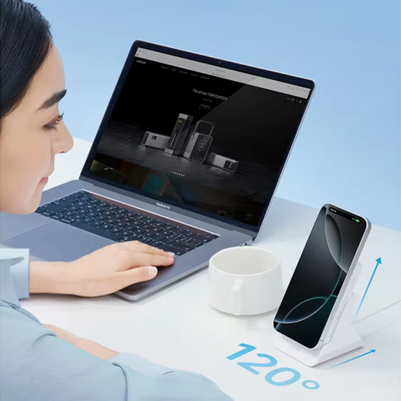 - Khi ở nhà hoặc văn phòng: Bạn chỉ cần đặt viên pin lên đế sạc, thiết bị sẽ lập tức biến thành một chiếc trạm sạc không dây từ tính để bàn. Vừa sạc lại năng lượng cho chính viên pin, vừa là giá đỡ hỗ trợ sạc không dây cho điện thoại cực kỳ tiện lợi.