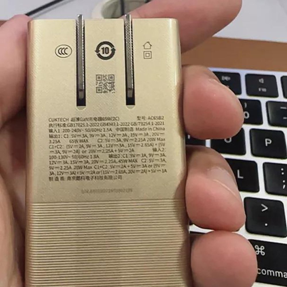 Sạc nhanh Cuktech Ultra-thin GaN Charger 65W (2C) PD3.0/PPS2.0/QC4.0 – AC65 for MacBook Pro/Air, Tablet, Galaxy S23, Dell XPS 13, Note 20/10+, iPhone 14/15/Pro/16, Switch, Steam Deck, Pixel and More
